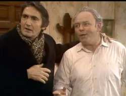 When Archie witnesses the mugging of grocer Tony Vicino (Jack Somack), he tells the police an account which differs from Tony's. When Sgt. Perkins stops by the Bunker home to get the full story of the incident, Archie, who is arguing with Tony over the account he gave the police, confuses him for a mobster type due to the dark suit, sunglasses and Fedora hat that he wears.